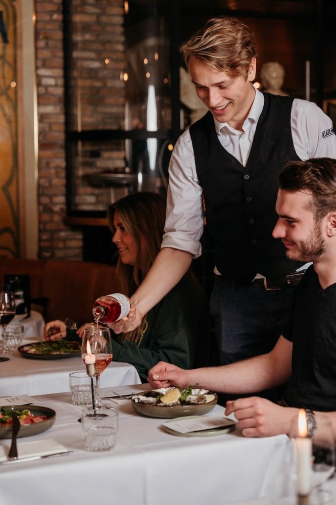 • Linkerzijde: een knusse restaurantsetting met een maandelijks wisselend menu, perfect voor een sfeervol diner.