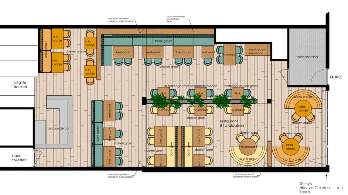 De zaak krijgt ook een andere indeling met zowel lange als hoge zitjes. Daarnaast komen er meer ronde banken, zodat je ook gezellig met een groep kunt dineren.
