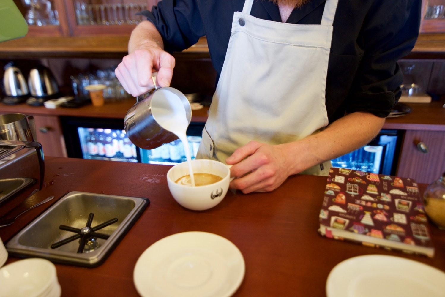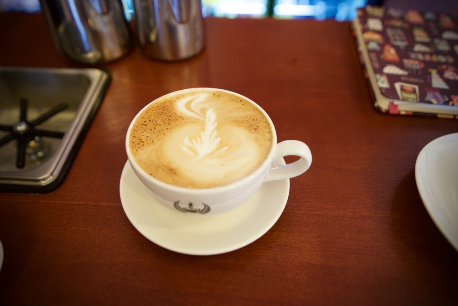 Uiteraard wilden wij ook een kopje koffie proeven, die door de barista's voor ons werd bereidt. Mooie lobbige melk, latte art en heerlijk van smaak!
