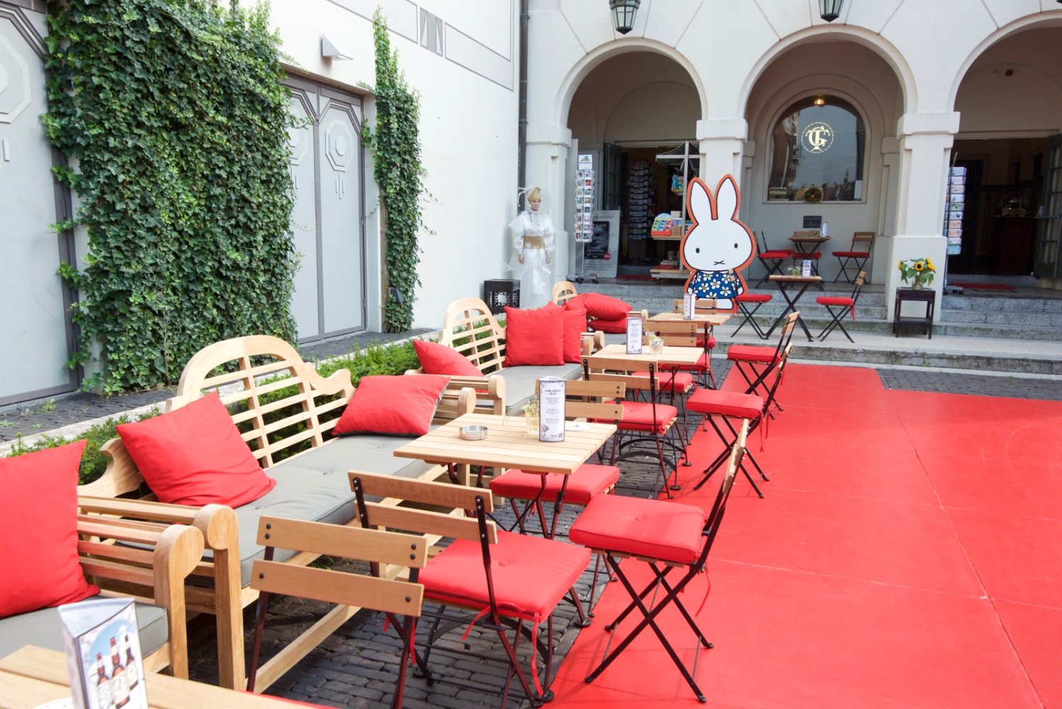 Voor de zonaanbidders is het ook mogelijk om buiten plaats te nemen op het terras. Vanuit hier kijk je uit op het Van Coothplein, maar zit je wel beschut en buiten de drukte. Een heerlijke plek om van je kopje koffie of een van de speciaalbieren te genieten.