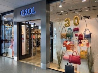 Deze maand is het 30 jaar geleden dat Grol Lederwaren is gestart met hun winkel. Sylvia begon in november 1993 met een hoekje lederwaren en wat koffers in de schoenreparatie van haar vader, waar nu Branderij Joost zit. Binnen no-time groeiden ze hieruit en aangezien het nieuwe deel van het centrum in aanbouw was, besloten ze daarheen te verhuizen, met zowel de schoenreparatie als de lederwaren en reisbagage. Het was 1 pand, maar ieder met een eigen ingang en een schuifdeur tussen beide winkels. In april 1994 openden ze hier hun deuren. Al snel bleek het een succes en een jaar later kwam Sylvia's man Erik meewerken.