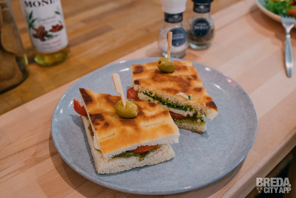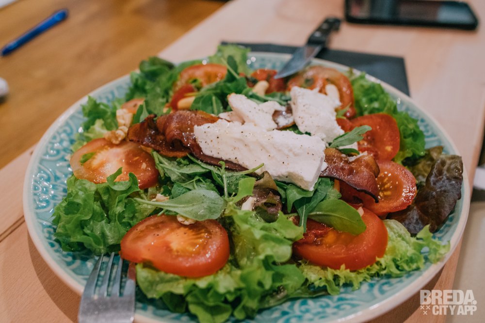De lunchkaart bestaat uit onder andere belegde focaccia, luxe salades en tosti's. Wij bestellen een focaccia caprese en de salade geitenkaas. Beide gerechten zijn absoluut een aanrader.