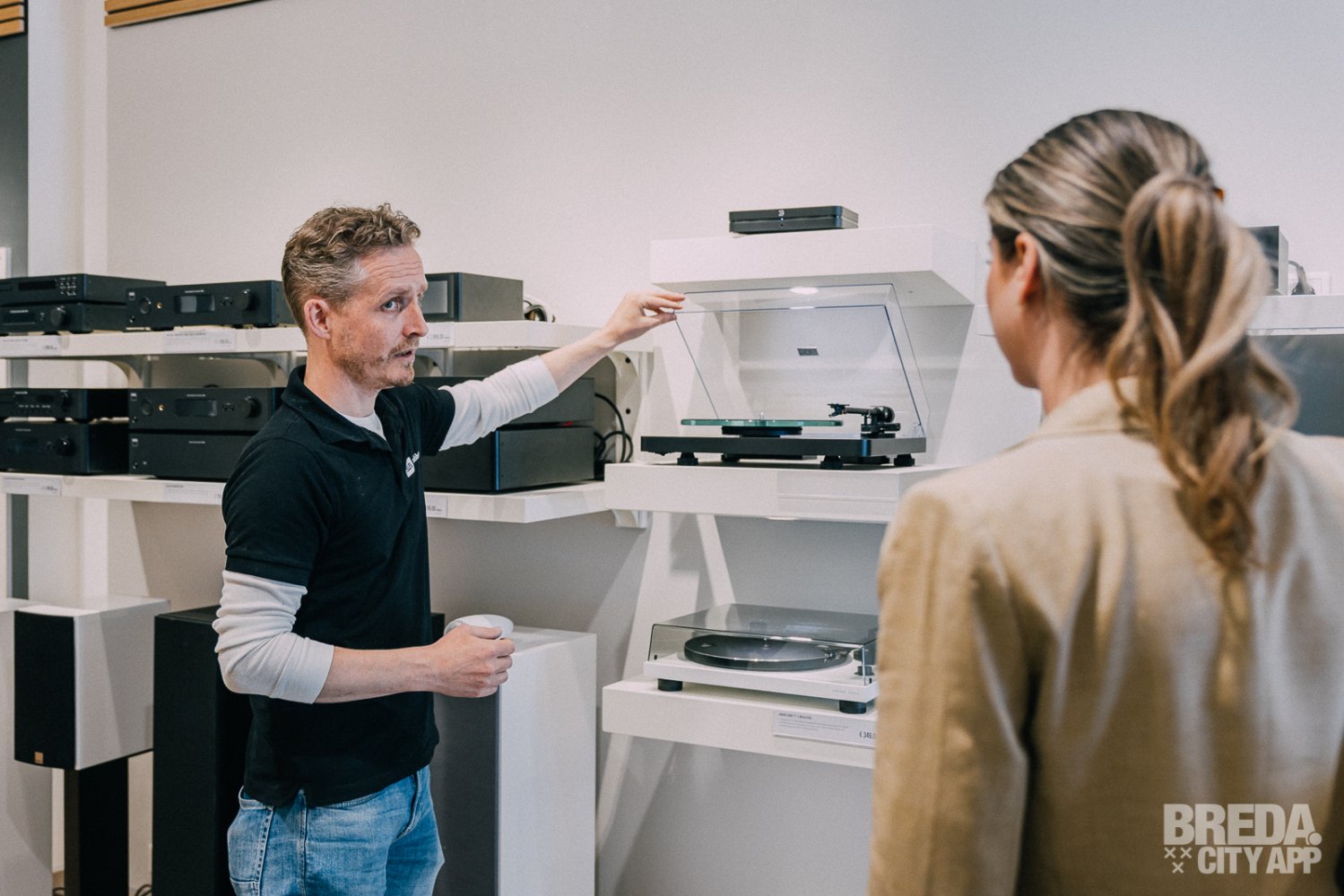 We werden hartelijk ontvangen in de nieuwe winkel door Daniël en Marvin. Daniel, bedrijfsleider, is al ruim twee jaar werkzaam bij HiFi Klubben. Hij is geboren en getogen in Breda en is altijd in verschillende audiozaken werkzaam geweest. Vol passie vertellen Daniël en Marvin over de winkel en de producten. Voorheen zat HiFi Klubben midden in het centrum, aan de Korte Brugstraat. Hier konden klanten niet voor de deur parkeren en zijn ze dan ook vaak met de klanten mee naar parkeergarage De Barones gelopen om de aankopen netjes naar de auto te brengen. Bij de nieuwe winkel kun je gewoon voor de deur parkeren, makkelijk toch?