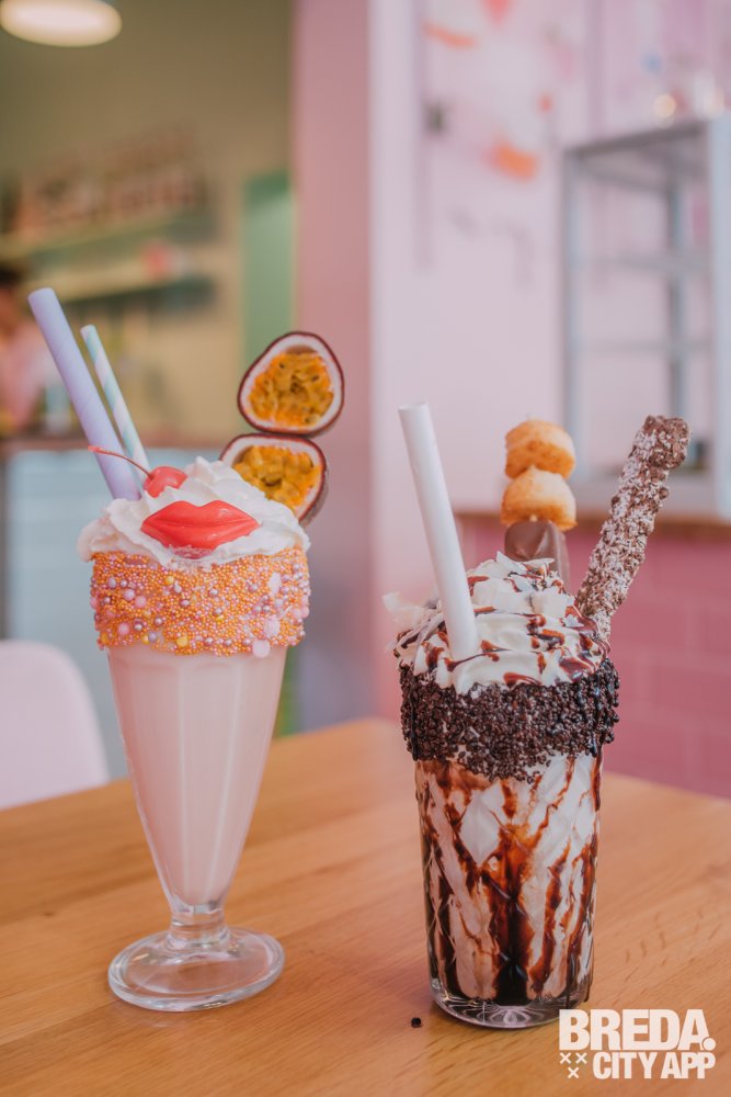We sluiten af met deze mega monster shakes! Nieuw op de kaart bij The Cakeroom en de naam doet eer aan. Want een monsters zijn deze shakes, een smaak explosie van mango en de andere shake geheel in het teken van chocolade!