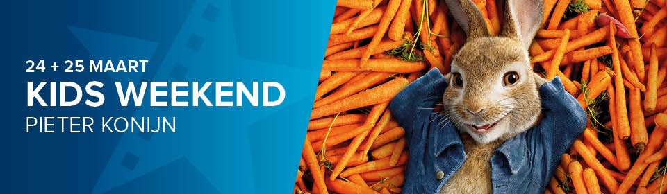 Tijdens het speciale Kids Weekend op 24 en 25 maart, staat de bioscoop tussen 10.00 en 17.00 uur in het teken van de nieuwe komische familiefilm Pieter Konijn; een verfilming van Beatrix Potter's tijdloze verhaal over een eigenwijs konijn dat probeert de moestuin van een boer binnen te dringen.