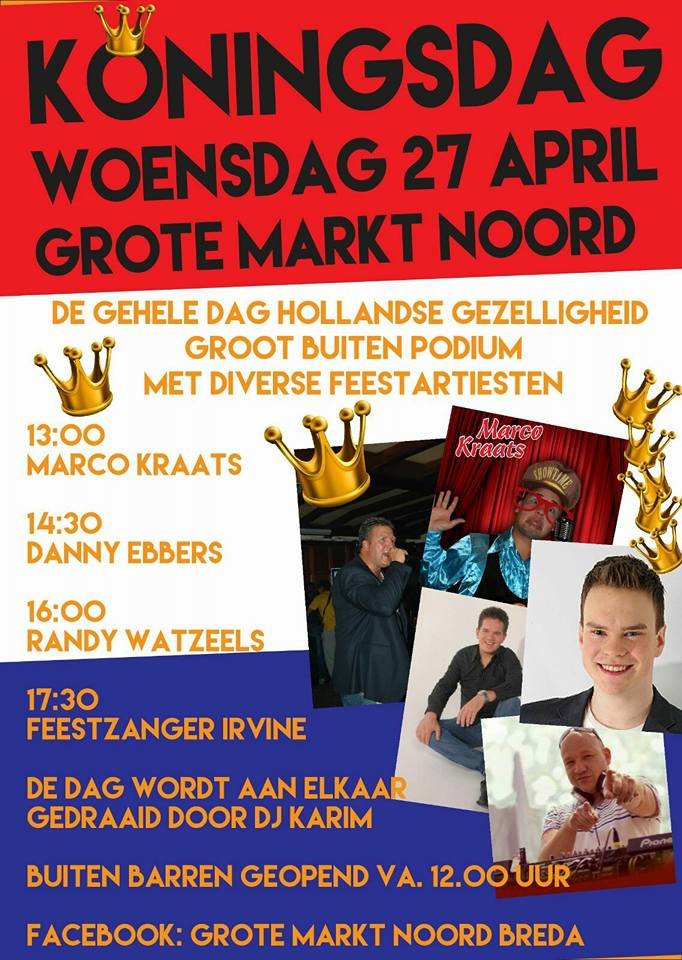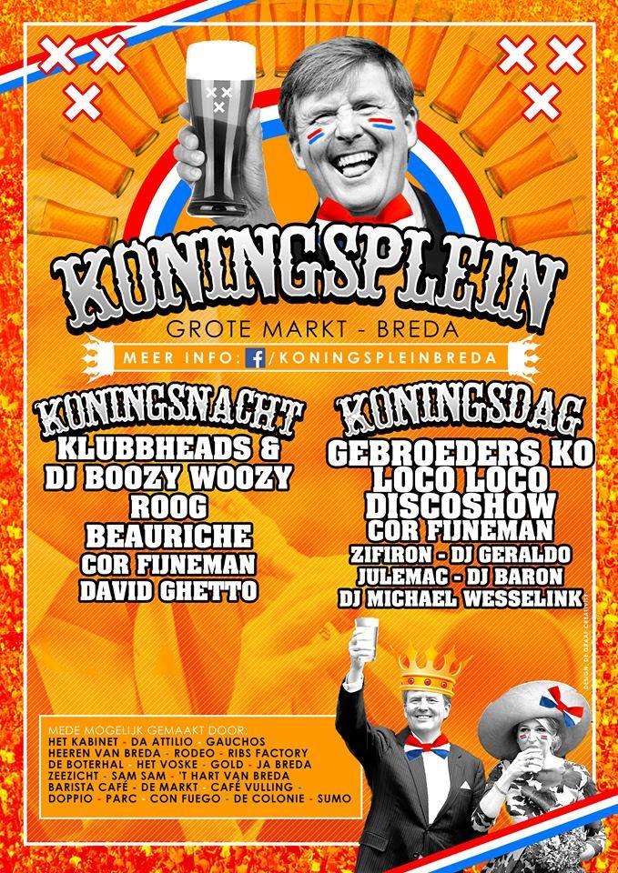 Koningsdag en -nacht wordt ook dit jaar weer groots gevierd in Breda. Er komen verschillende podia in het centrum te staan en ook daarbuiten zijn er een aantal grote events. In het Valkenbergpark zijn uiteraard weer volop activiteiten rondom de vlooienmarkt. We hebben er hier alvast een paar voor je op een rijtje gezet, de rest volgt snel. Check hiervoor ook de agenda in de Breda City App!