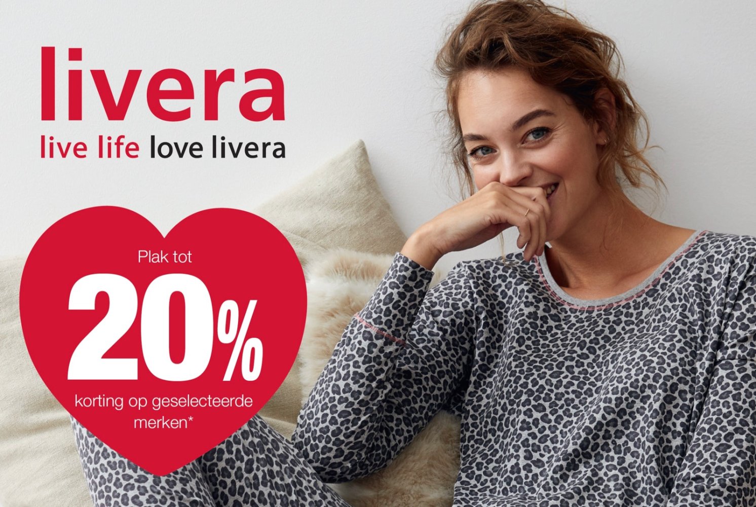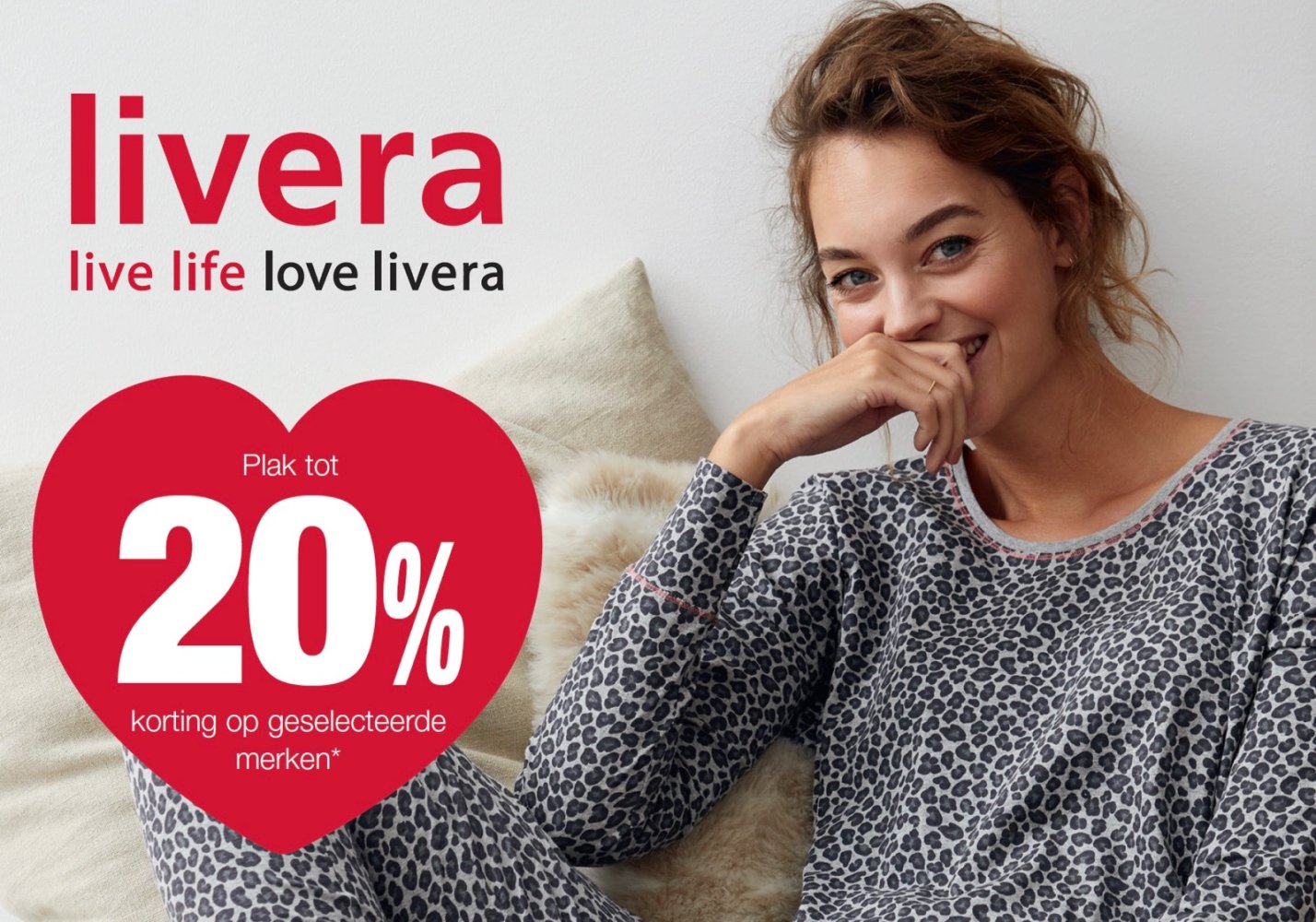 Twee weken lang kun je bij Livera stickers plakken op de merken Chantelle, Passionata, Livera en Femilet. De stickervellen worden huis aan huis verspreid of haal je in de winkel aan de Lange Brugstraat. Hiermee ontvang je 20% korting op de eerste twee artikelen en nog eens 15% op elk daarop volgend artikel.