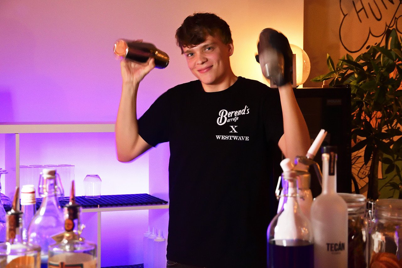 Berend's barretje is hard op weg. Je vindt hem elke zaterdag al bij Bühne met de origineelste cocktails. Nu brengt hij dit jaar ook nog eens met verschillende kunstenaars zijn eigen dranklijn uit. Elke twee maanden brengen we een nieuwe fles uit, waaraan een expositie is gekoppeld van de maker die het label heeft ontworpen.