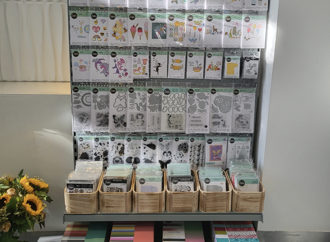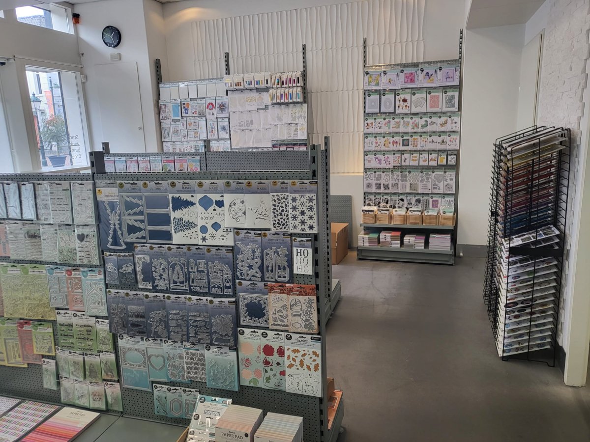 Voorin de winkel zal een wisselende collectie hangen en achterin de winkel alles uit het vaste assortiment. Daarnaast is er een aparte ruimte in de winkel om te freubelen, hier kunnen maximaal 4 personen tegen een kleine bijdrage zelf kaarten maken met een beperkt aantal spullen uit het winkel assortiment.
