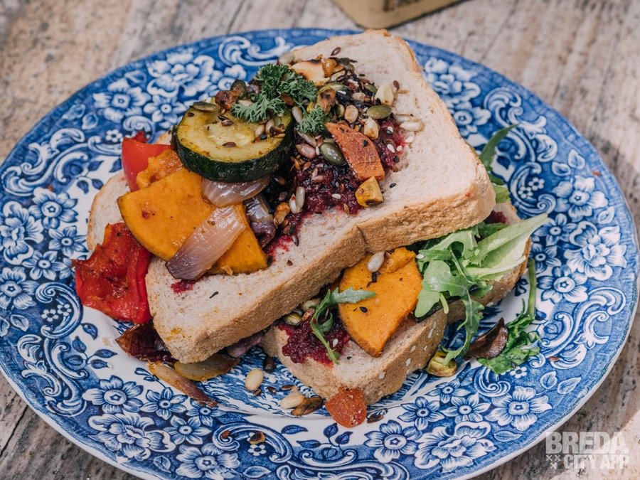 Alles is vers, wordt zelfgemaakt en dat proef je. De zomerse wrap is een tortilla die rijkelijk is belegd met kip, tomatensalsa, een zelfgemaakte crunch van noten, paprika, ui, guacamole en een frisse dressing. De kip is lekker mals en goed gekruid. De smaken van de groentes gaan goed samen en de subtiele pittige smaak wordt gekoeld door de dressing. Van het broodje biet met gegrilde courgette, paprika, zoete aardappel en een crunch van noten worden we ook erg blij. Het brood is lekker knapperig en de zoete bietenspread is zelf gedraaid. De groentes zijn van te voren gemarineerd waardoor je de kruiden goed proeft. Mijn tafelgenoot laat weten dat hij bij iedere hap weer wordt verrast door een nieuwe smaak.
