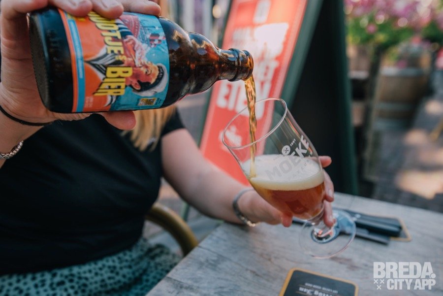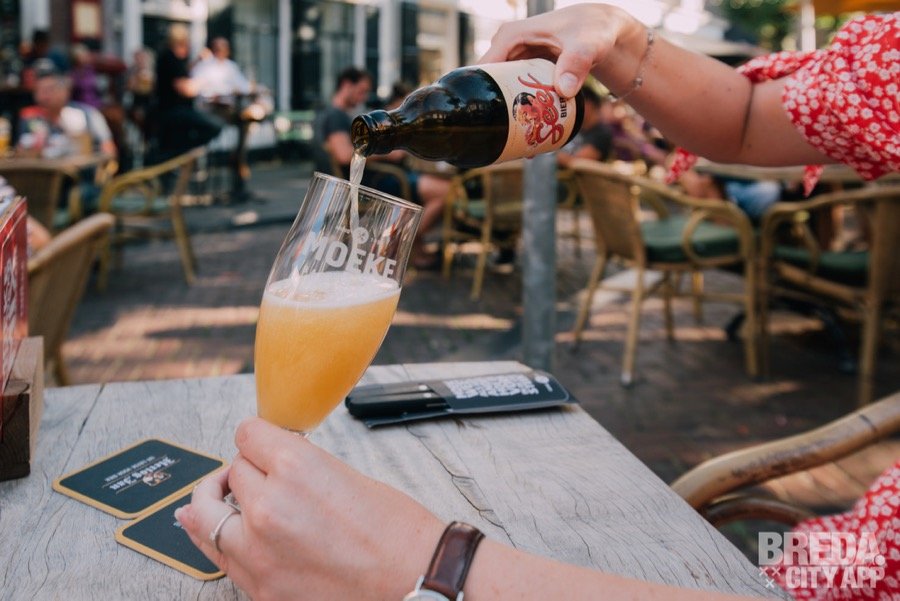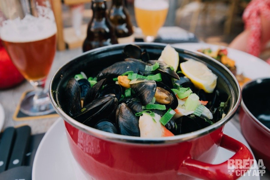 Bij binnenkomst worden we ontzettend vriendelijk ontvangen door de behulpzame bediening. We nemen een plaatsje aan de bar en wachten even tot er een plek vrij komt op het heerlijke terras op De Ginnekenmarkt. Het is een zomerse avond en we starten dan ook met een lekker koud pilsje om even af te koelen.