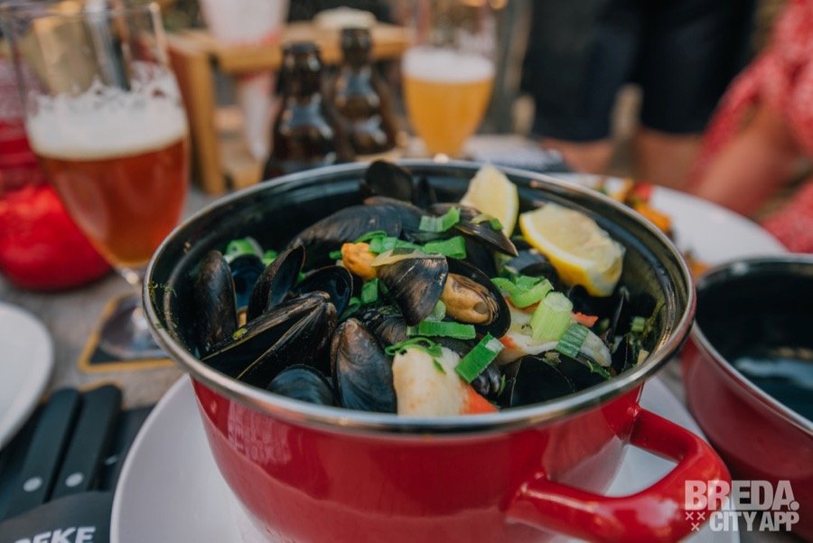 Al gauw komt er een dampend pannetje verse mosselen onze kant op. Het water loopt ons al in de mond wanneer we ze zien aankomen. De mosselen worden geserveerd met kreeftensaus en cocktailsaus. Ze zijn heerlijk op smaak gebracht dankzij de goed getrokken bouillon. Tussen de mosselen vinden we verschillende groentes en krab sticks. Genieten!