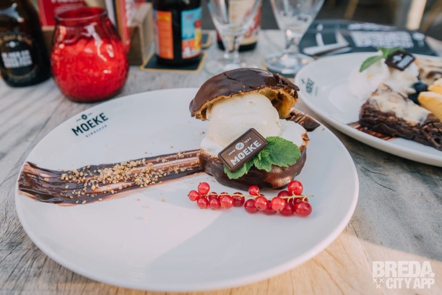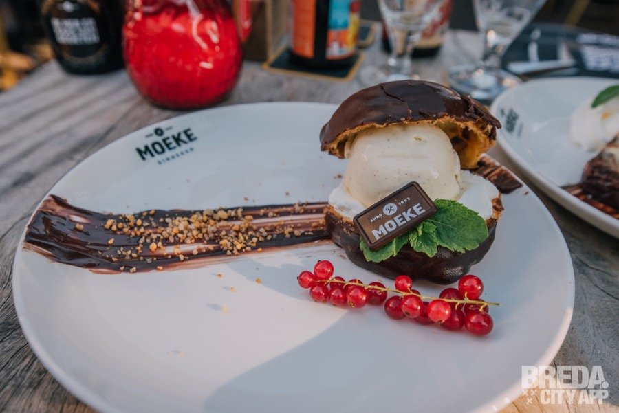 Stiekem zitten we al best wel vol van alle gerechten, maar er is altijd ruimte voor een toetje. We laten ons dan ook weer graag verrassen. Niet veel later krijgen we de moeke soes geserveerd. Een enorme soes met slagroom, vanille-ijs en chocolade. Mega lekker!