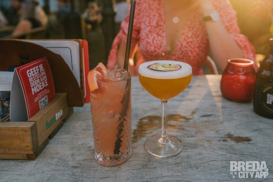 Terwijl we nagenieten in het heerlijke avondzonnetje verrast de bediening ons wederom weer. "Dames, willen jullie nog een lekker zomers drankje voor in het zonnetje?" Daar kunnen we natuurlijk geen nee tegen zeggen. We krijgen Moeke's Martini ofwel de klassieke pornstar martini en de Paloma. Moeke's Martini is heerlijk zoet van smaak en de Paloma lekker verfrissend vanwege de grapefruit lemonade. Bij Moeke is het altijd feest en dat kunnen wij zeker beamen!