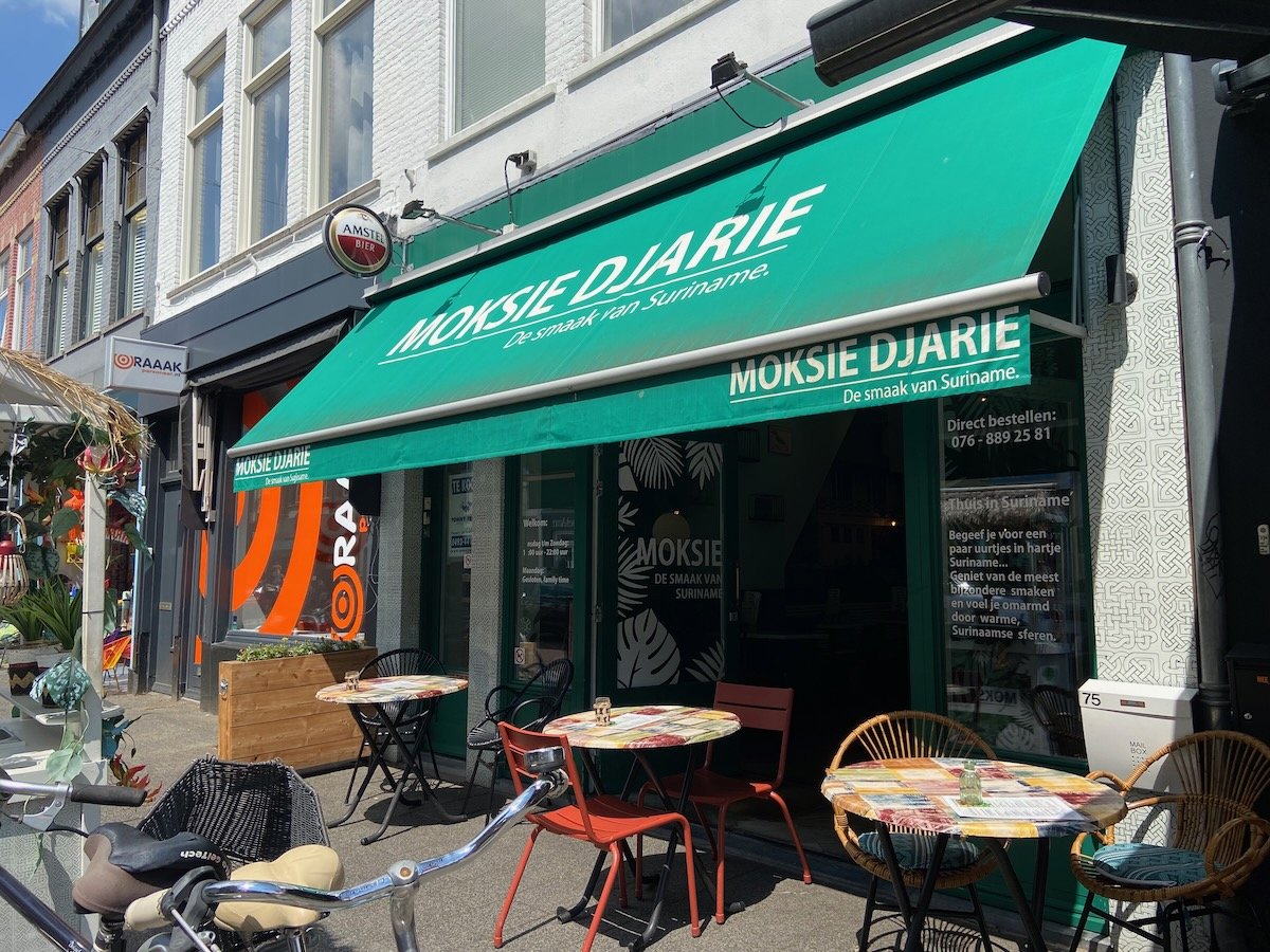 De letterlijke vertaling van ‘Moksie Djarie’ is ‘gemengde erf’. In de ruimste zin van het woord verwijst ‘Moksie Djarie’ naar de smeltkroes van wereldkeukens waaruit de Surinaamse keuken is ontstaan. Op de kaart vind je klassiekers zoals Javaanse Bami en Nasi, maar uiteraard ook Roti. Wie het eethuis binnenstapt waant zich in ‘klein Suriname’! De unieke sfeer in combinatie met gastvrijheid maakt Moksie Djari zo succecvol in de afgelopen jaren.