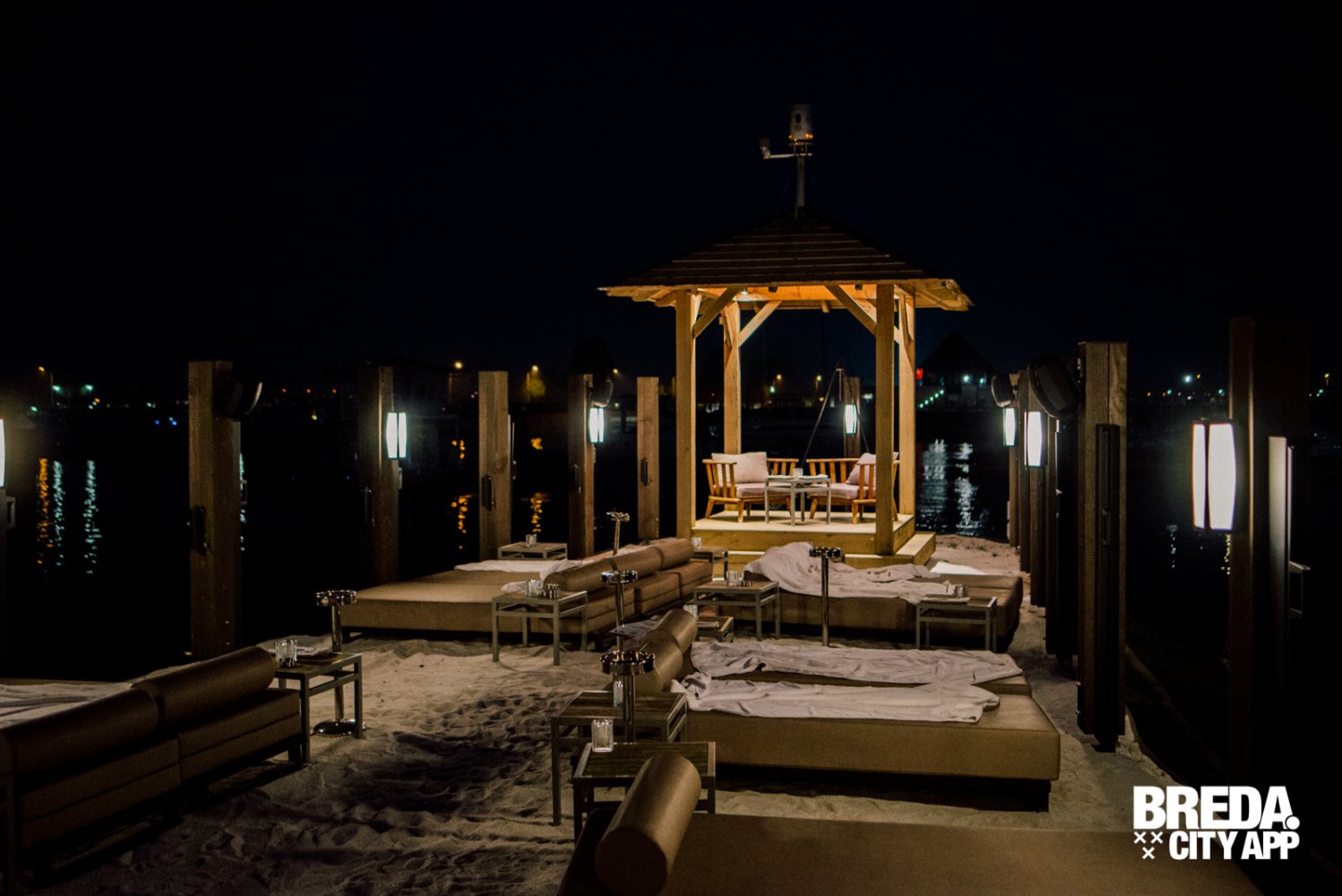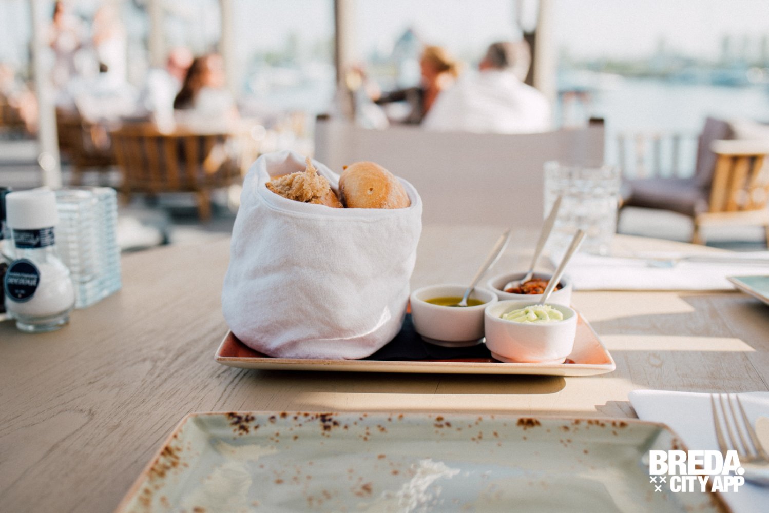 More-Itz ligt net iets buiten Oosterhout, zodra we de haven tegemoet rijden krijg ik direct een vakantiegevoel. Wat een prachtige omgeving en wat een rust heerst hier aan het water. We wandelen langs sloepjes, jachten en zeilboten naar het luxe-uitziende More-Itz. We worden direct hartelijk ontvangen door de hostess; een tafeltje, in de zon, in de schaduw, het kan allemaal. Wat me opvalt is de sfeer, het is hier heel relaxed; lounge muziek, knusse zitjes, fijne banken, warme kleuren, kussens, plekjes in en uit de zon. Thomas laat ons het strandje zien, onlangs geopend voor het seizoen. Wauw! Hier kun je heerlijk vertoeven aan het water, op een bedje met het meest prachtige uitzicht.