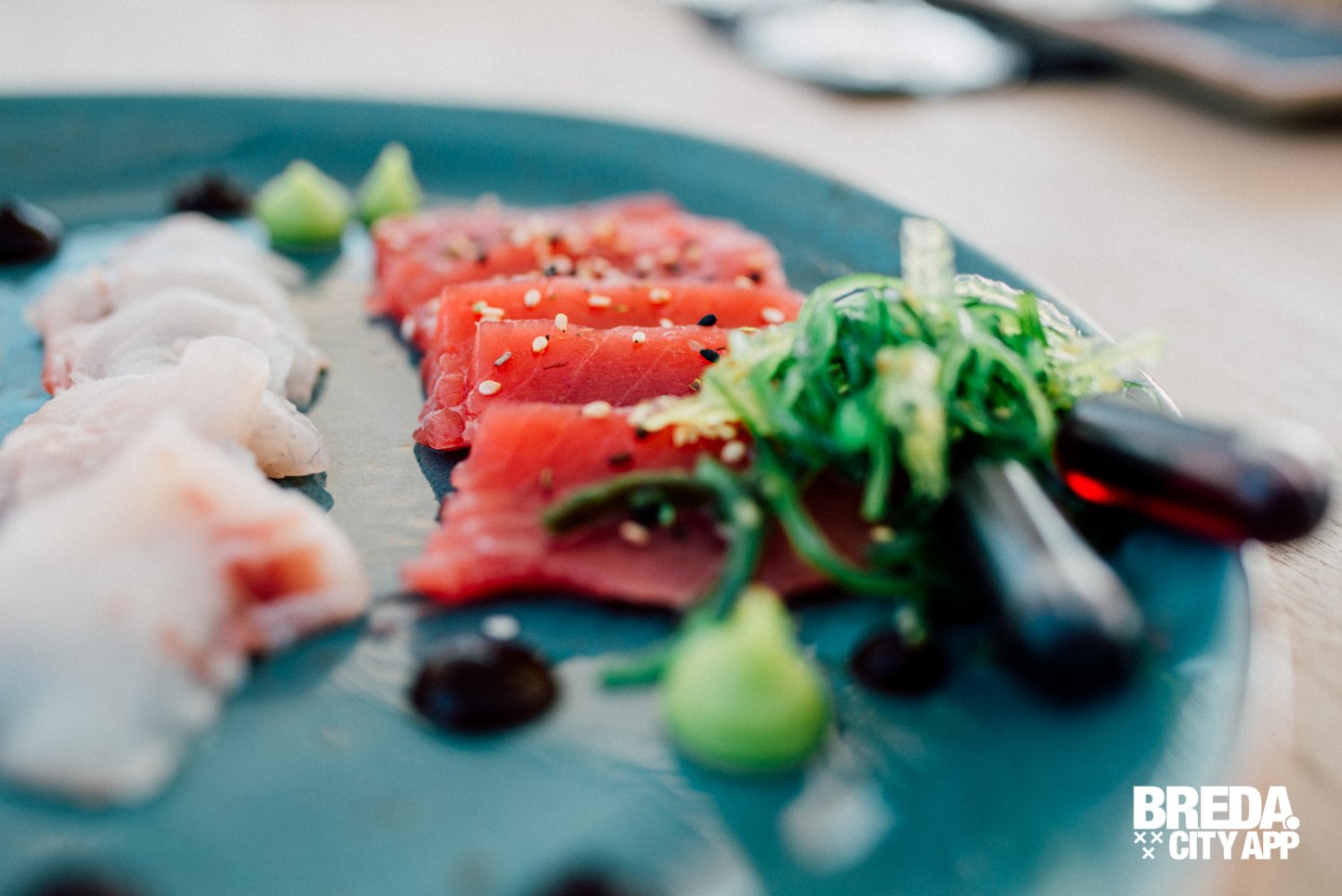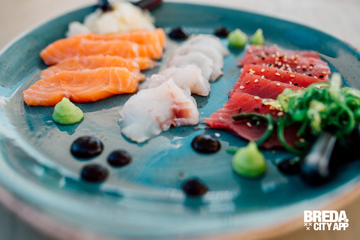 We zien veel van deze etagères voorbij komen, ze zien er heerlijk uit! Maar wij besluiten ons toch te laten verrassen en gaan voor de a-la-carte keuzes. We starten met vis, lekker zomers; een garnalen cocktail en sashimi. Wow! Wat een grote porties en wat is het lekker. Super goed op smaak, prachtig gepresenteerd, dat belooft veel goeds!
