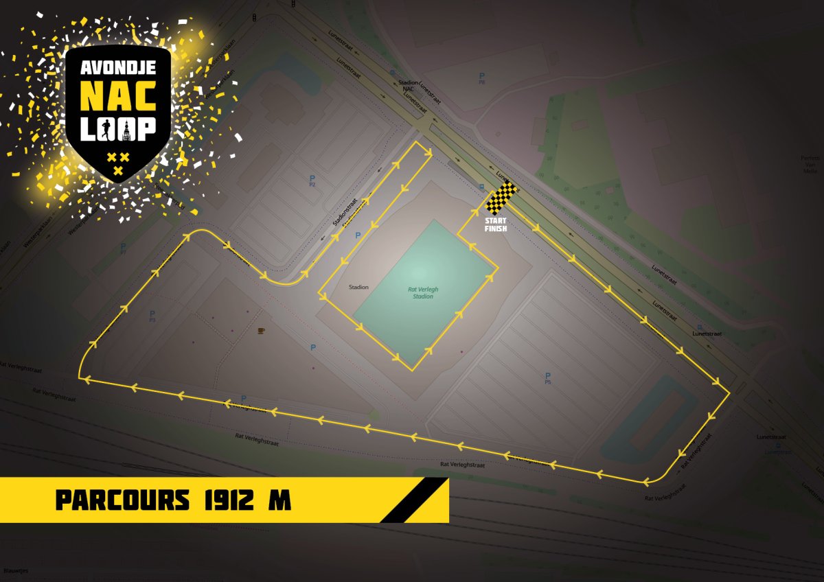 De Avondje NAC Loop is een sportief avondje uit voor iedereen: jong én oud en getrainde én beginnende lopers. Tijdens het evenement is het mogelijk om de volgende afstanden te lopen: FamilieRun, 1912 meter, 3 km en 6 km. Je loopt langs unieke plekken waar normaal gesproken alleen de NAC-spelers mogen komen.