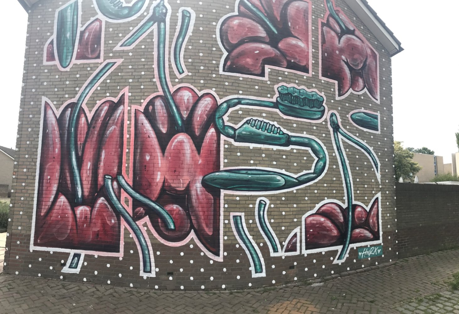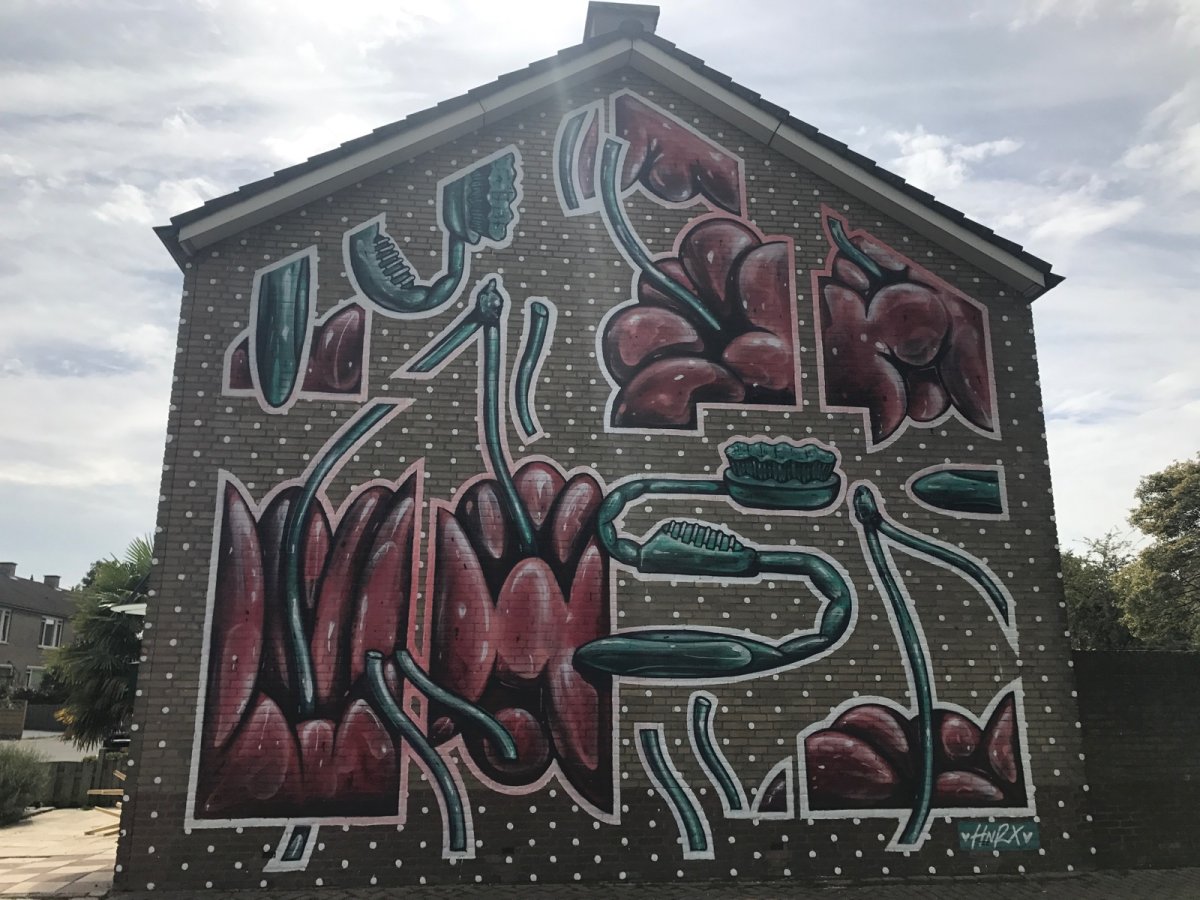 HNRX is graffitikunstenaar in Oostenrijk en maakt urban art over de hele wereld. Onlangs maakte hij twee muurschilderingen aan het Hagehof in Princenhage.