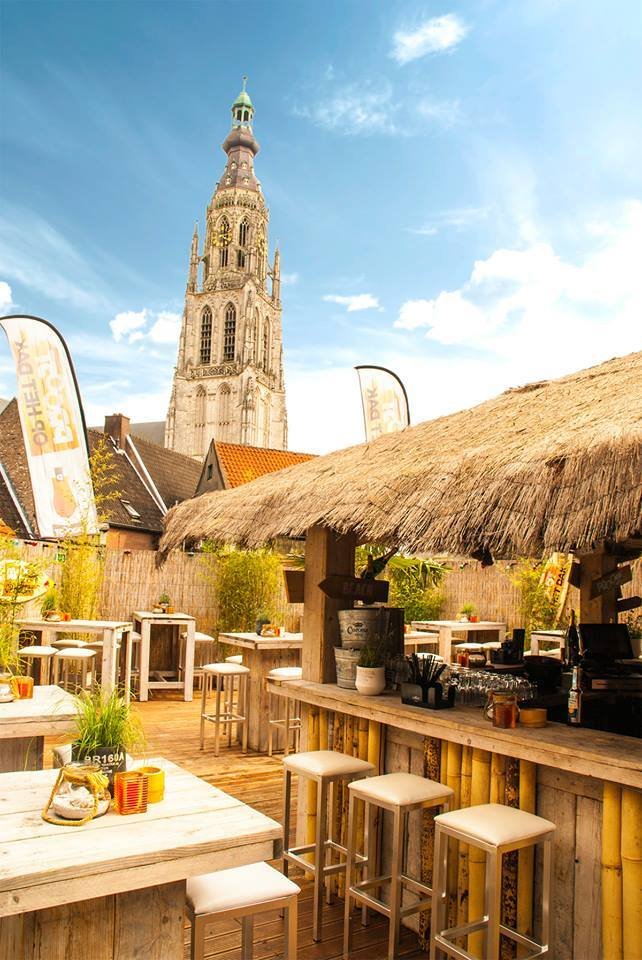 Oase in de Binnenstad is het zonnige dakterras van Proost Breda aan de Vismarktstraat 20 en heeft een prachtig uitzicht op de grote Kerk van Breda. Naast de zomerse welkomstcocktail en de smakelijke hapjes kun je op het dakterras ook genieten van luxe Gin Tonics en unieke XXL Cocktails.