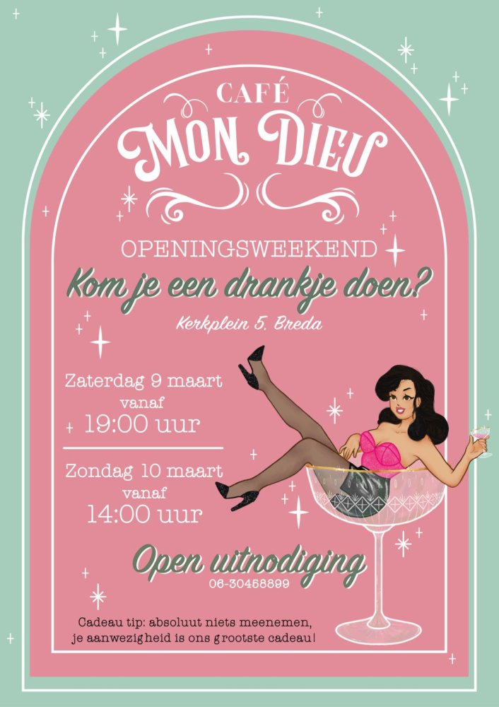Op 22 februari opende Mondieu de deuren aan het Kerkplein in Breda. In het weekend van 9 en 10 maart staat het feestelijke openingsweekend gepland. Eigenaar Rolf is vastbesloten om de unieke sfeer te behouden maar wel een eigen stempel op het café te drukken. Rolf is geen onbekende in de horeca, hij heeft jarenlang café de Pub in Oosterhout gehad.