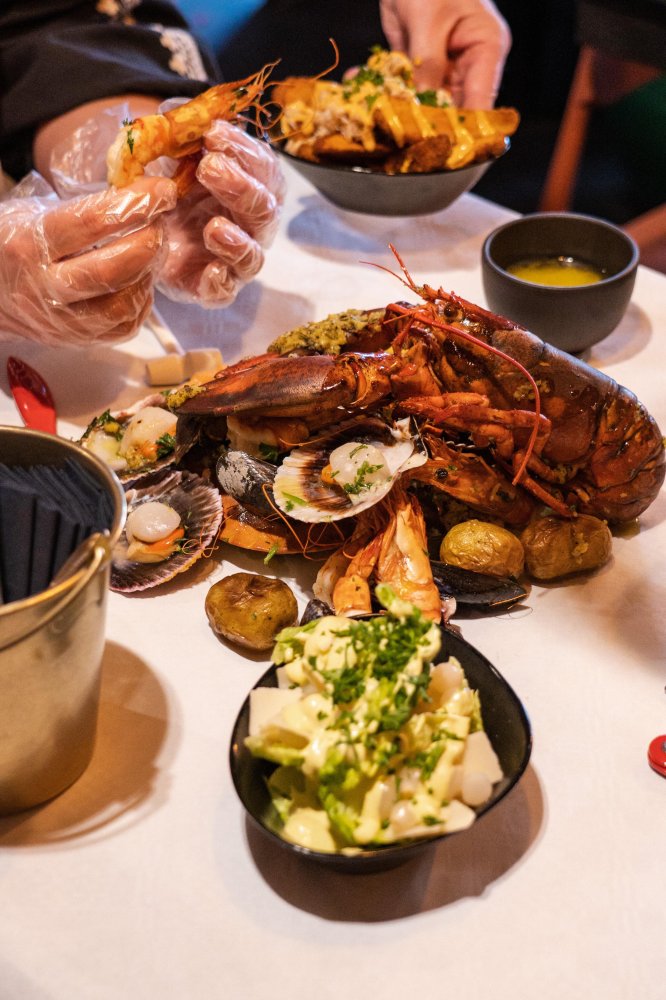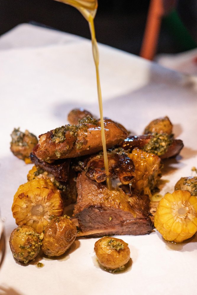 Het eten wordt in een grote zak gestoomd en letterlijk op je tafel geserveerd. Beschermd met een een schort en handschoentjes kun je aanvallen. Er zijn in totaal vijf verschillende zakken te bestellen met vis, vlees of een combinatie van beiden. Vervolgens kies je de kruiden, het niveau van pittigheid en eventueel extra bijgerechten. De gemiddeld prijs van een een diner ligt rond de €39,95 en de duurste zakken kosten rond de €65 waarbij je bijvoorbeeld een complete kreeft van 1 kilo krijgt. De seafood boils worden bereid met krab, kreeft, mosselen, coquilles, grote rivierkreeften, aardappelen en mais. De gestoomde Ribs kun je bestellen van rund, varken of kip.