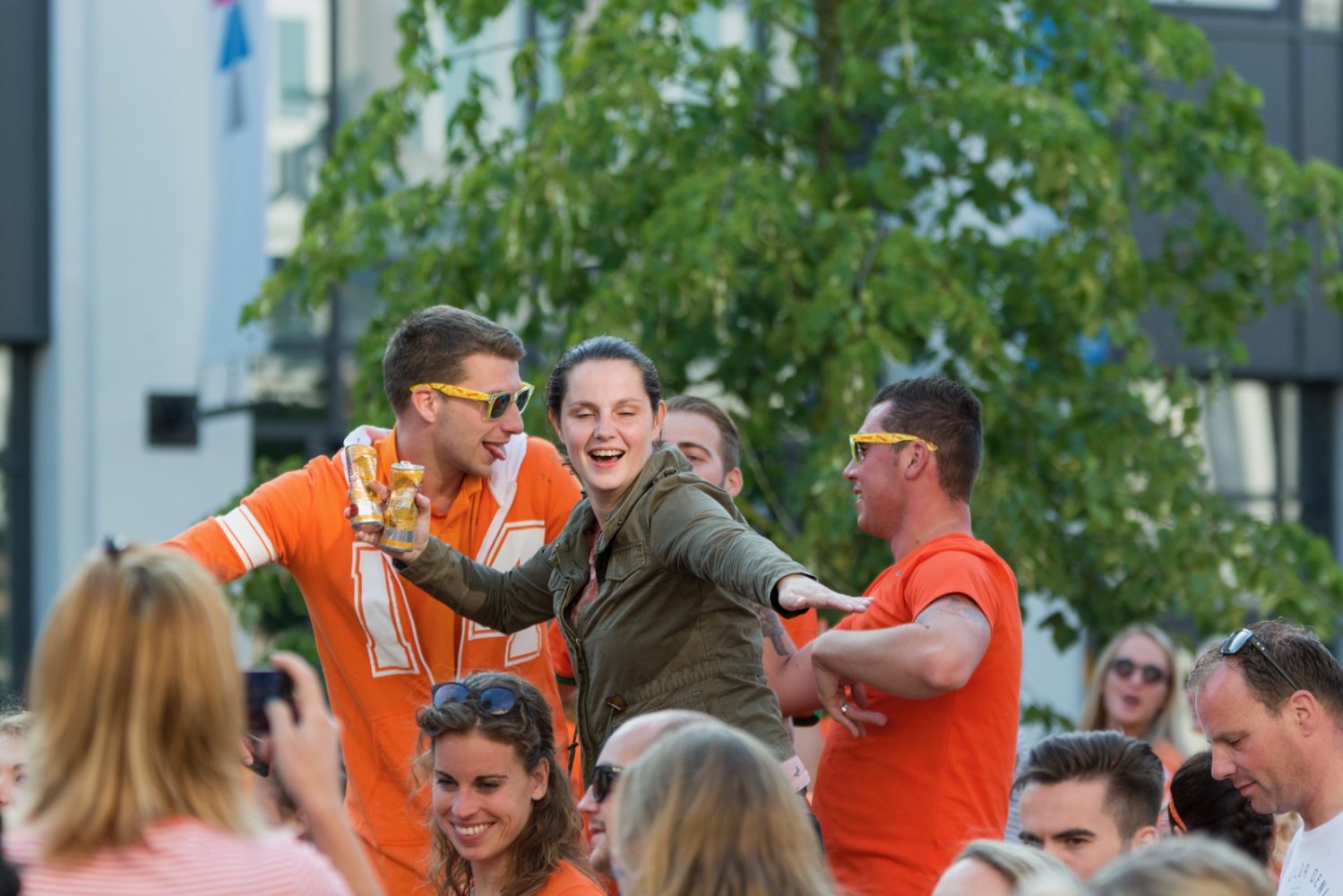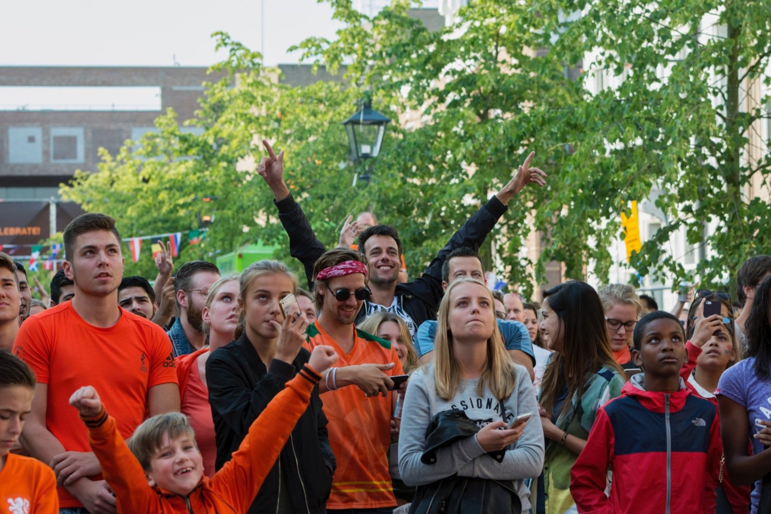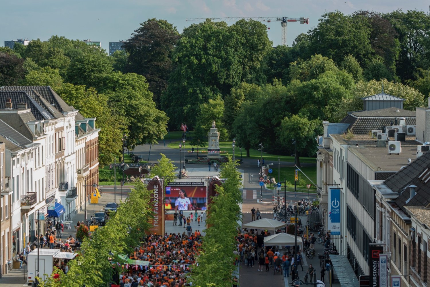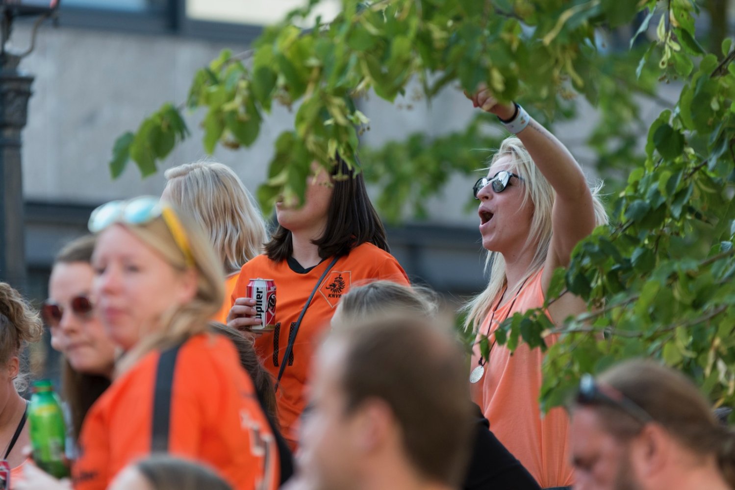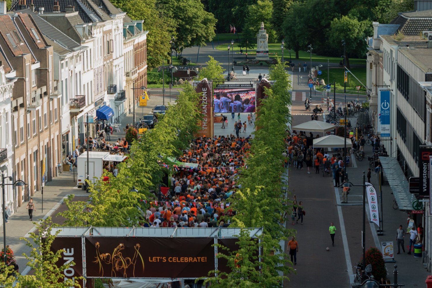 Enkele uren voor de finale stroomde de Willemstraat al vol met oranjefans. Tijdens de wedstrijd keken honderden fans gezamenlijk toe hoe de oranjevoetbalsters de zege behaalden en van Denemarken wonnen.