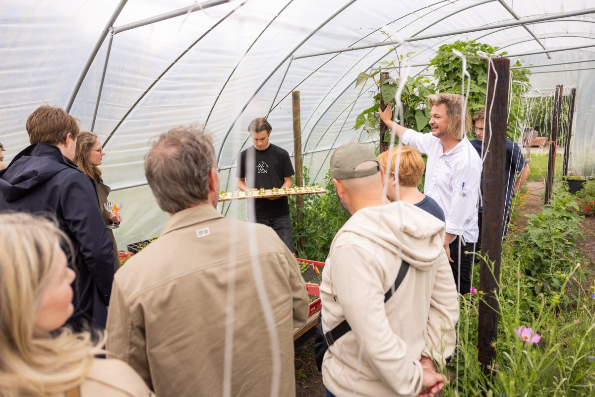 Jouw bezoek begint met een inspirerende boerenrondleiding. Je wandelt over de akker, leert over het gewas dat binnenkort op je bord komt en laat je verrassen door kleine bites en amuses — huisgemaakt en recht van het veld. Daarna schuif je aan voor een elegant vijfgangendiner, bereid met seizoensproducten van eigen land of lokale leveranciers. Elke gang wordt ondersteund met zorgvuldig gekozen wijnen; er is ook een alcoholvrij alternatief beschikbaar