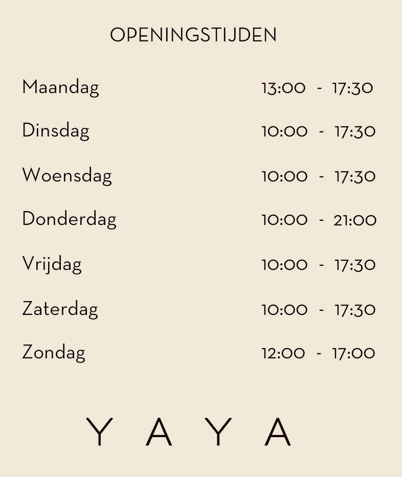 Kun jij wel persoonlijk kledingadvies gebruiken, wil je wat meer ruimte hebben om zelf te kunnen shoppen of vind je het gezellig om met eigen gezelschap te komen en de gehele winkel tot jullie beschikking te hebben? De stylisten van YAYA staan voor je klaar! Ze doen er alles aan om het shoppen zo leuk en veilig mogelijk te maken.