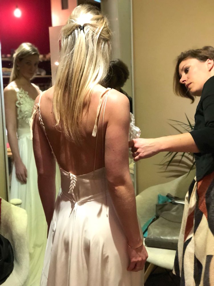 Demonstratie hoe ontwerp je een bruidsjurk bij Love Celebration.