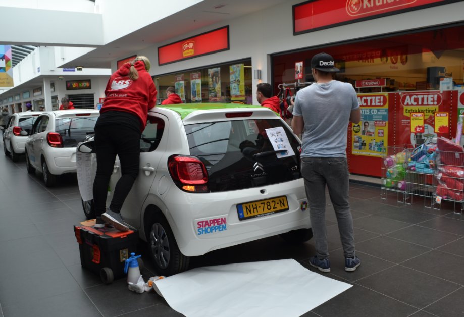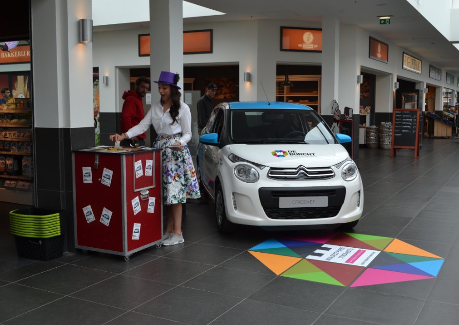 Wellicht heb je het spektakel wel gezien… Want op maandag 1 mei werden er in winkelcentrum de Burcht 6 auto’s live bestickerd en het leukste is: tot en met 1 juni maak jij kans op 1 jaar gratis autorijden in de hippe Citroën C1!