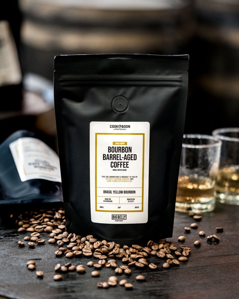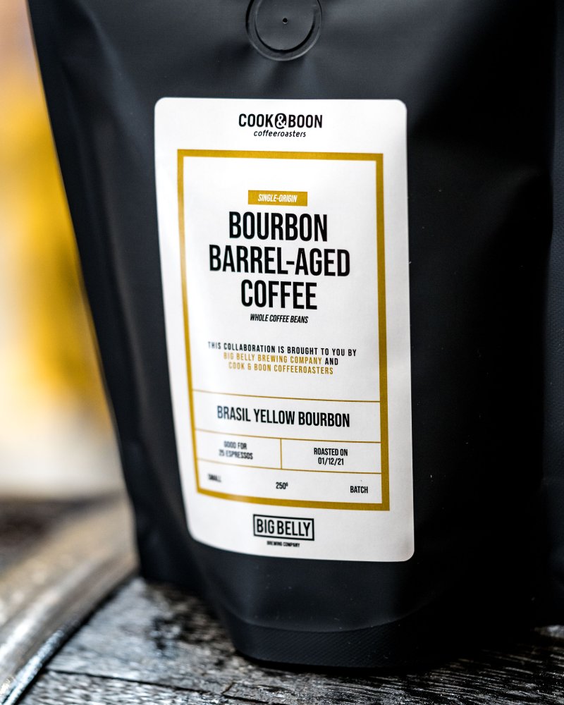 De afgelopen weken hebben de Bredaase bedrijven Big Belly Brewing Company en Cook&Boon Coffeeroasters de handen ineen geslagen om iets unieks te maken. Een primeur in Europa: Bourbon Barrel Aged koffiebonen!