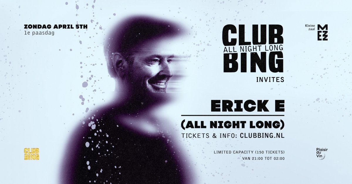 Sindsdien is Erick E een vaste waarde in clubs, op festivals en beach parties door heel Nederland. Op zondag 5 april (eerste paasdag) staat hij in MEZZ Breda voor een exclusieve All Night Long set van 21.00 tot 02.00 uur. Eén DJ, vijf uur lang en één muzikale reis. Koop hier je tickets.