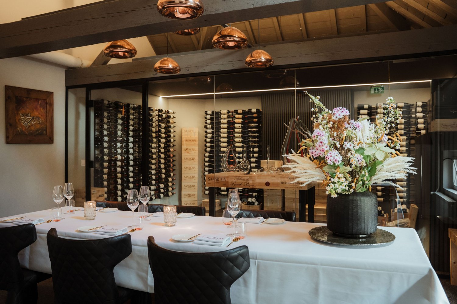 Naast de mogelijkheden in het restaurant zelf beschikt Wolfslaar ook over verschillende sfeervolle ruimtes op de eerste verdieping. Zo is er de Wijnkamer, een intieme ruimte die perfect is voor kleinere gezelschappen tot ongeveer 10 tot 12 personen. Deze kamer biedt rust en privacy en kijkt uit op een indrukwekkende inloop wijnklimaatkast, waar een selectie bijzondere wijnen zorgvuldig wordt bewaard. Daarmee is het een ideale plek voor een besloten vergadering, een zakelijke lunch of een speciaal diner met een select gezelschap.