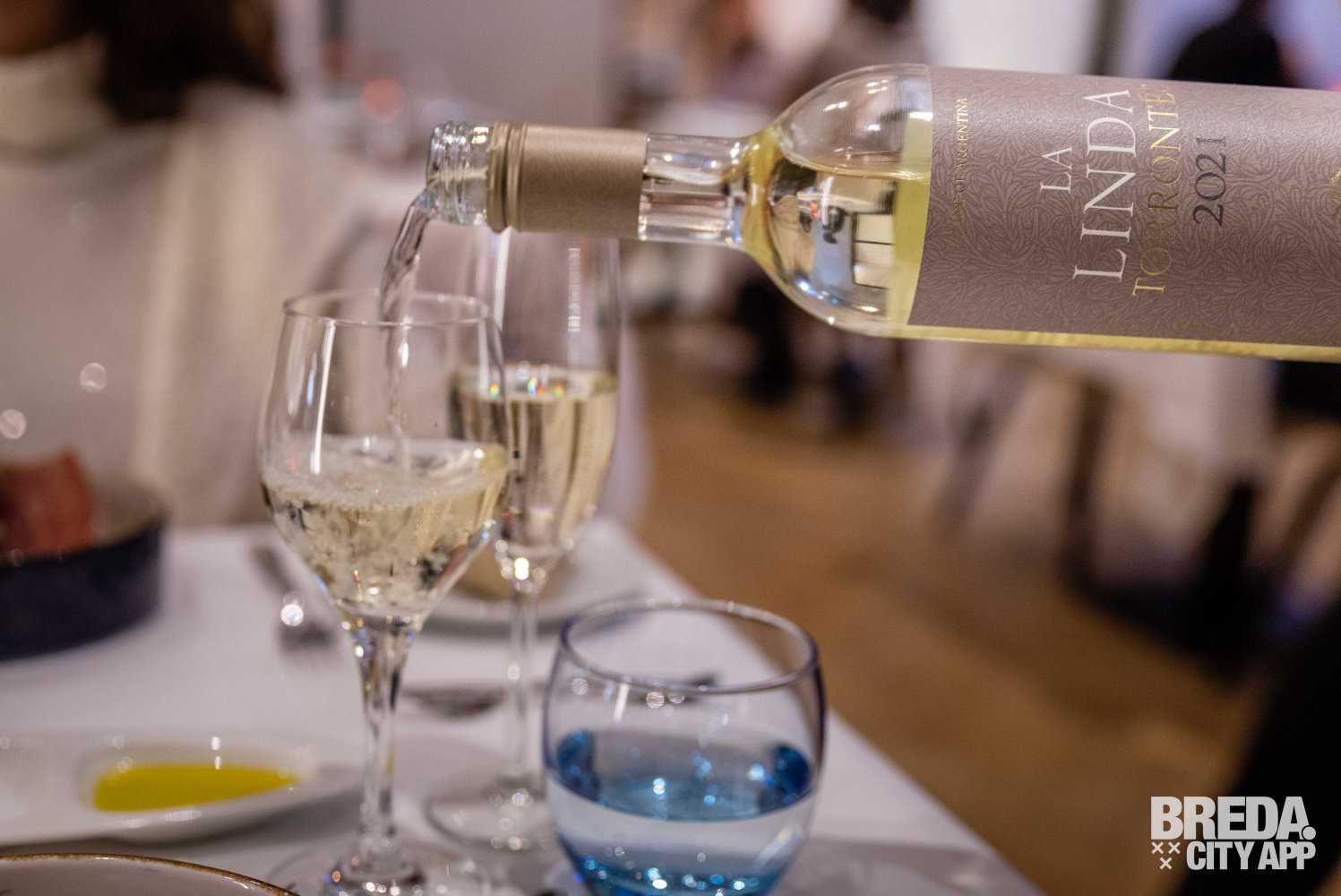 We starten met een glaasje prosecco en ontvangen een amuse: champignon gevuld met pittige chorizo. Een origineel en ontzettend smaakvol hapje om mee af te trappen. We zijn beiden erg benieuwd naar de salade en laten onze keuze voor het voorgerecht dan ook vallen op de salade met serranoham, gestoofde peertjes en Cabrales (Spaanse blauwaderkaas). De combinatie is gewaagd maar de zachte smaak van de peer brengt de scherpe smaak van de blauwaderkaas in balans. Er wordt hier een Argentijnse witte wijn bij geadviseerd: La Linda Torrontes. Een frisse, zeer toegankelijke witte wijn met indrukken van wit fruit en rijpe bloemen die mooi combineert met het voorgerecht.