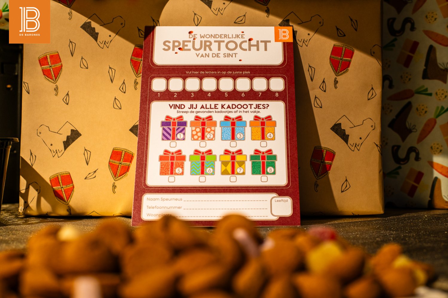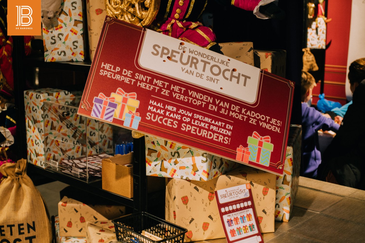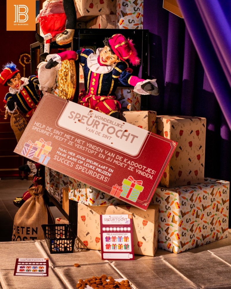 Er is ook een leuke speurtocht in de Barones. Vind jij alle pakjes en win jij daarmee misschien zelfs een prijs? De speurtocht begint in de pakjeskamer waar je van piet een speurformulier ontvangt. Ben jij een goede speurneus? Je vindt de wonderlijke pakjeskamer van de Sint in de ruimte naast Tierelantijn