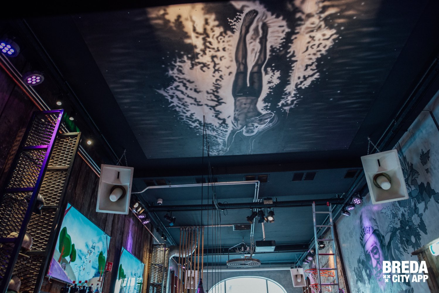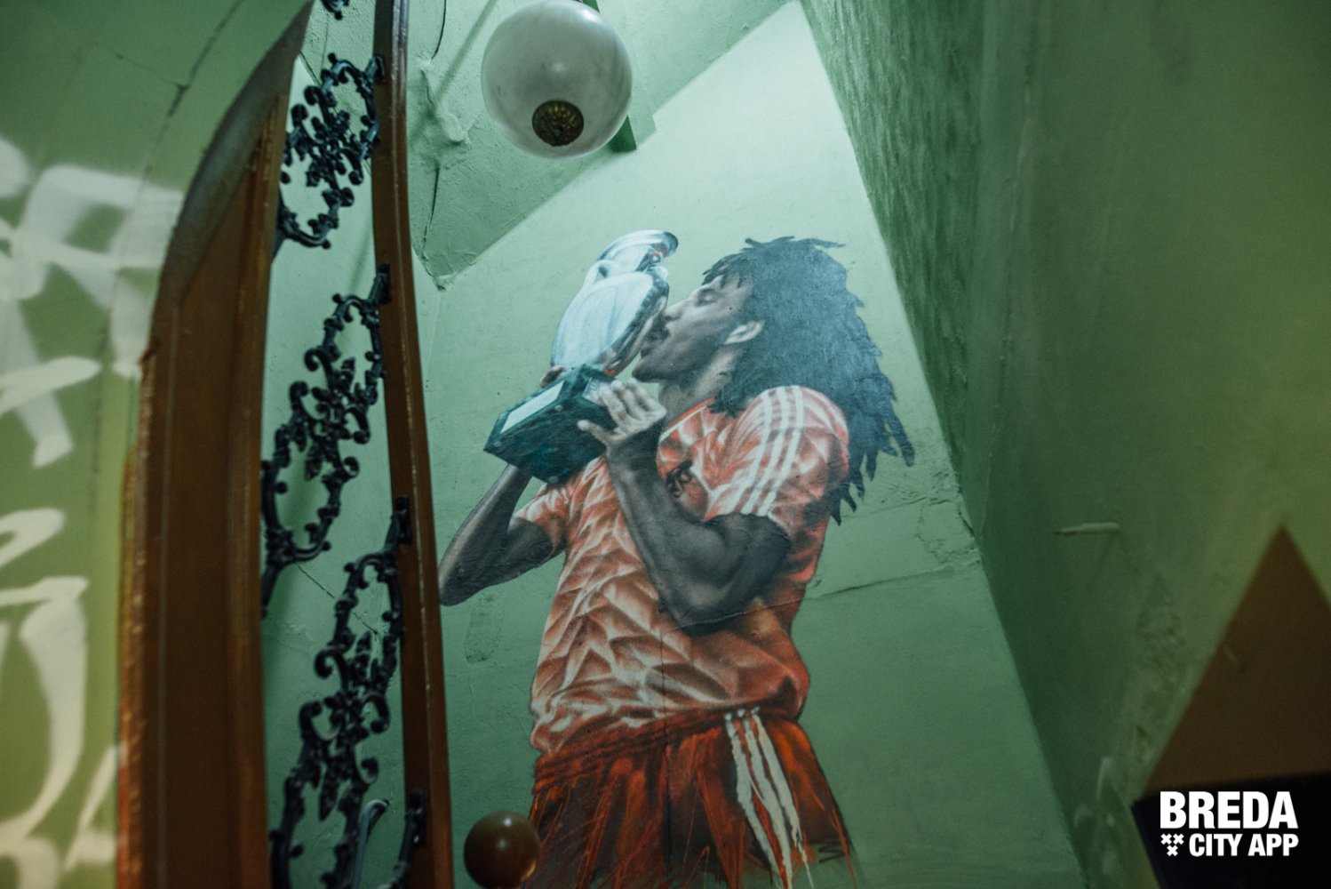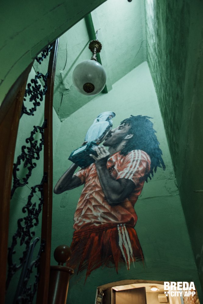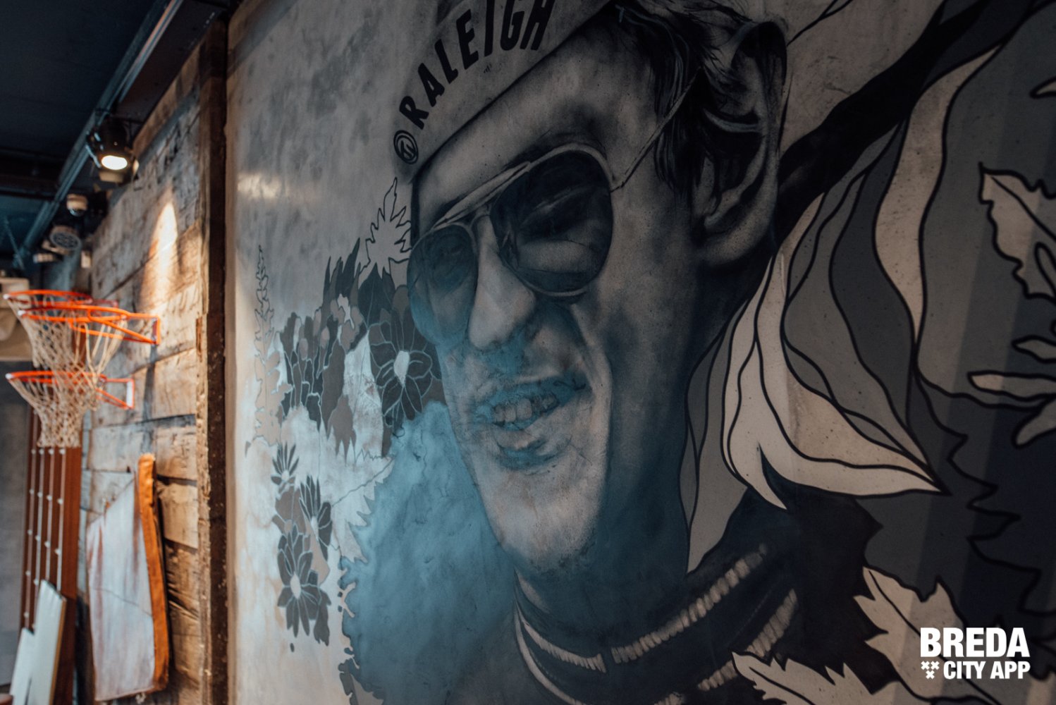 De diverse decoratieve en authentieke sportattributen in combinatie met verschillende werken van graffiti artiesten op de muur zorgen voor een echte NY-styl inrichting.