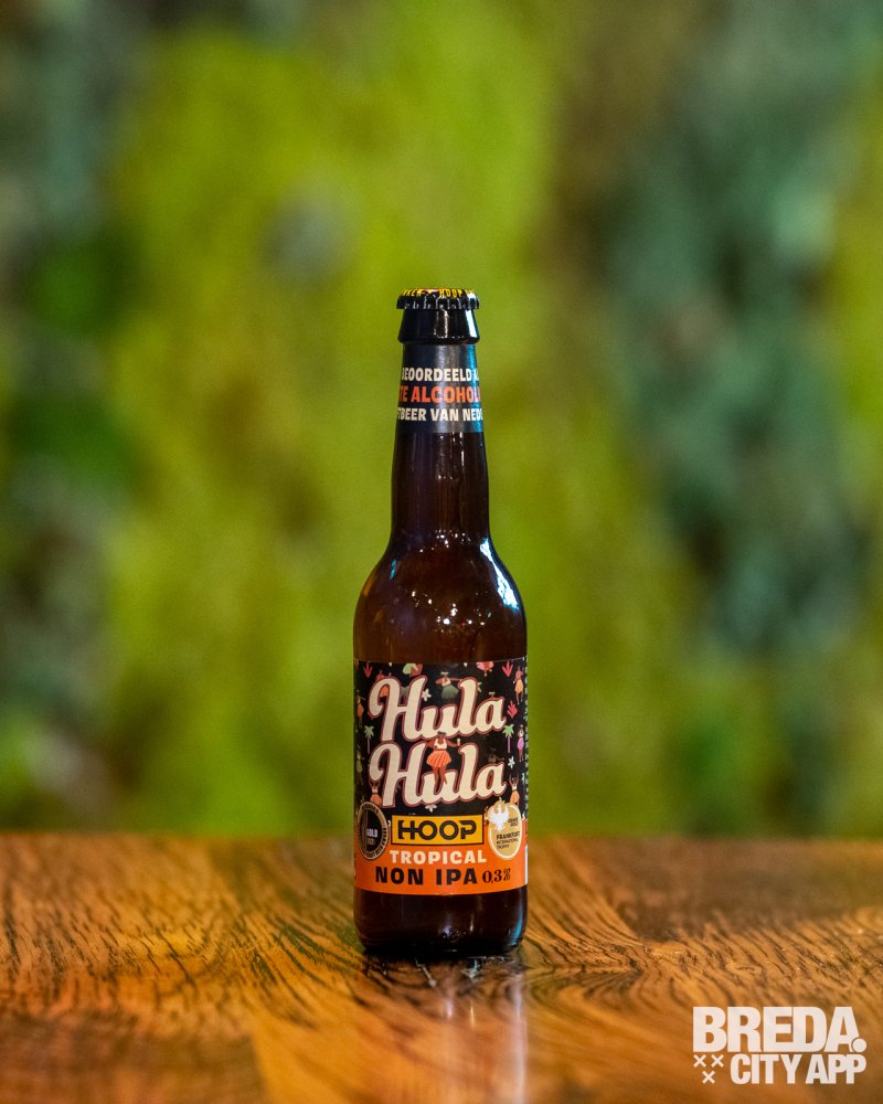 Hula Hula Tropical Non IPA 0.3% is een alcoholarm speciaalbier van Brouwerij Hoop. Wanneer je dit speciaalbier opent en de eerste slok neemt ruik en proef je tropisch fruit. De aroma’s van mango en ananas vliegen je om de oren! Al die frisse en fruitige hopsmaken en de gebruikte haver, die net even een beetje extra body aan het bier geeft, zorgen ervoor dat je de alcohol absoluut niet mist.