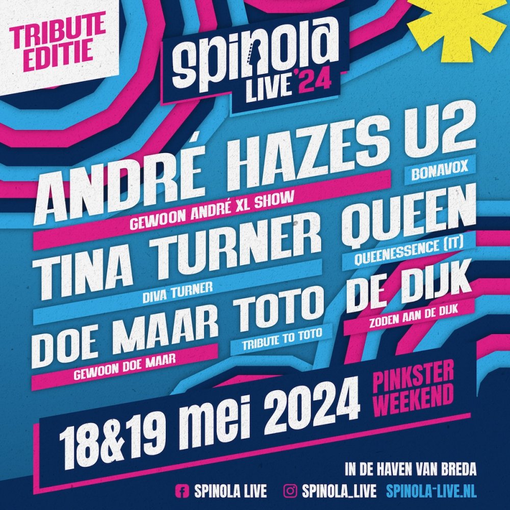 Op 18 en 19 mei schittert Spinola LIVE op het water met een tribute editie! Geen marktkramen en dure cocktails. Maar goede coverbands van o.a Queen, Andre Hazes en Toto! Een fijne bak nostalgie, gezellige mensen en een lekker koud pilsje in je hand. Zaterdag schreeuwen we allen mee met onze favoriete classics! Zondag eren we het Nederlandstalige lied. Jong en oud zal voorzien worden van muzikaal genot en gezelligheid. Ben jij erbij?
