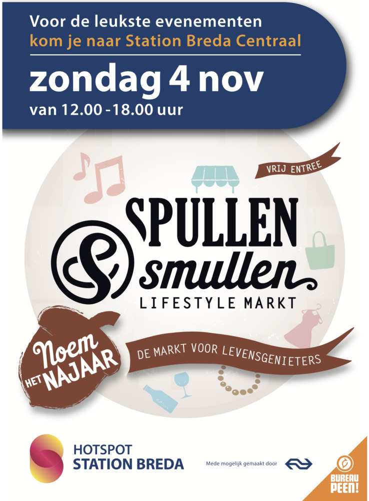 Noem het Najaar. Wat je wil. Koud buiten? Hindert niet. Creatieve marktwinkels, fijn barretje en rijdende restaurants maken jouw middag fijn. Lekker warm binnen. De kachel is aan deze keer. Natuurlijk bij Spullen & Smullen – De markt voor levensgenieters. En met een muzikaal topprogramma wordt het nóg fijner. Inchecken dus aankomende zondag op Hotspot Station Breda!