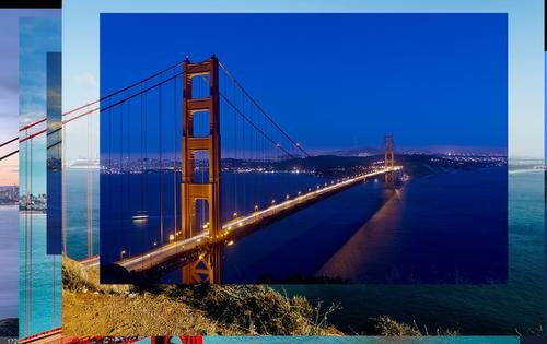 Verleg zoekt en verzamelt beelden van het internet en gebruikt deze als uitgangspunt voor zijn video’s. ‘Golden Google Gate’ is een videoinstallatie waarin stedelijke iconen als de Golden Gate Bridge en de Big Ben in een andere werkelijkheid geplaatst zijn.