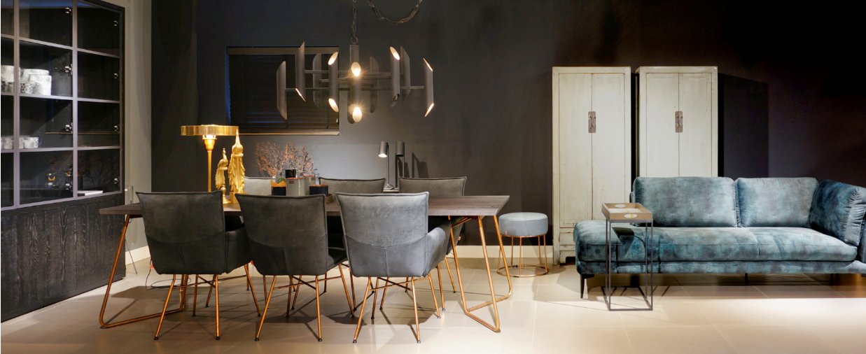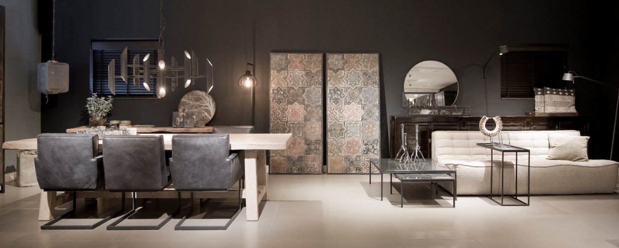 Van penthouse tot gerenoveerde boerderij, aan urban vibes ontbreekt het hier niet in de urban chic stijl met velvet, staal, messing, leder, rookglas en marmer. Kunst geprint op canvas in strak zwart frame. Nieuw in de collectie is behang met mooie prints. Ook muurbekleding van leder en een bijzondere chandelier geven die cosmopolitische sfeer.