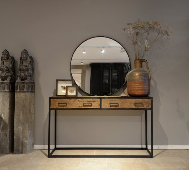 Warm en toch strak, landelijk en toch modern, chic en toch industrieel? Da’s best een uitdaging, toch? De combinaties maken het bijzonder; dus durf te combineren. Een aantal kleinere accessoires op een grote schaal of een dienblad vormt als vanzelf een harmonieus geheel. Mond geblazen glaswerk en stolpen met vlinders en andere curiosa. Gezellige woonkussens van velvet, linnen of leer, grof gebreide plaids. Een mooie spiegel boven je dressoir.