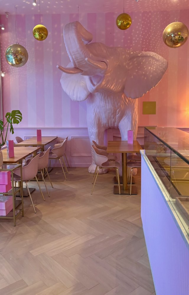 Centraal in de restyling staat de opvallende, nieuwe roze balie. Niet alleen een blikvanger, maar ook uitgerust met een grotere koelplaat waardoor de homemade sweets, van cupcakes tot cheesecakes, perfect gekoeld blijven. Een slimme én stijlvolle oplossing, want zo kunnen de lekkernijen ook op tropische dagen in topvorm worden gepresenteerd. Maar daar bleef het niet bij. De hele boetiek kreeg een subtiele upgrade die perfect past bij de sfeer die The Cake Room al jaren zo geliefd maakt. De vloer is volledig vernieuwd en op de muren prijkt een op maat gemaakt custom behang dat een dromerige, bijna sprookjesachtige sfeer toevoegt aan de ruimte. Het resultaat? Een zoete escape die voelt als een mix van een Parijse patisserie en een sprookjeswereld.