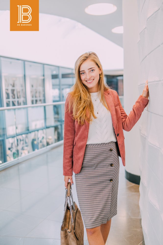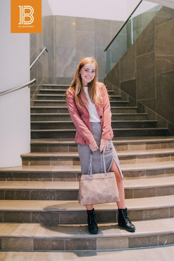 On Wednesday we wear pink! Maar dit najaar is roze niet alleen voor de woensdag, maar voor iedere dag! De zachtroze kleur, zoals we die zien in deze outfit van Comma, zien we veel terugkomen. De roze blazer maakt hier de outfit compleet. We zien weer de gebreide kabeltrui terugkomen, gedragen op een wat langere rok met ruiten. Dat klinkt toch als dé perfecte samenvatting van de najaarstrends van 2019?