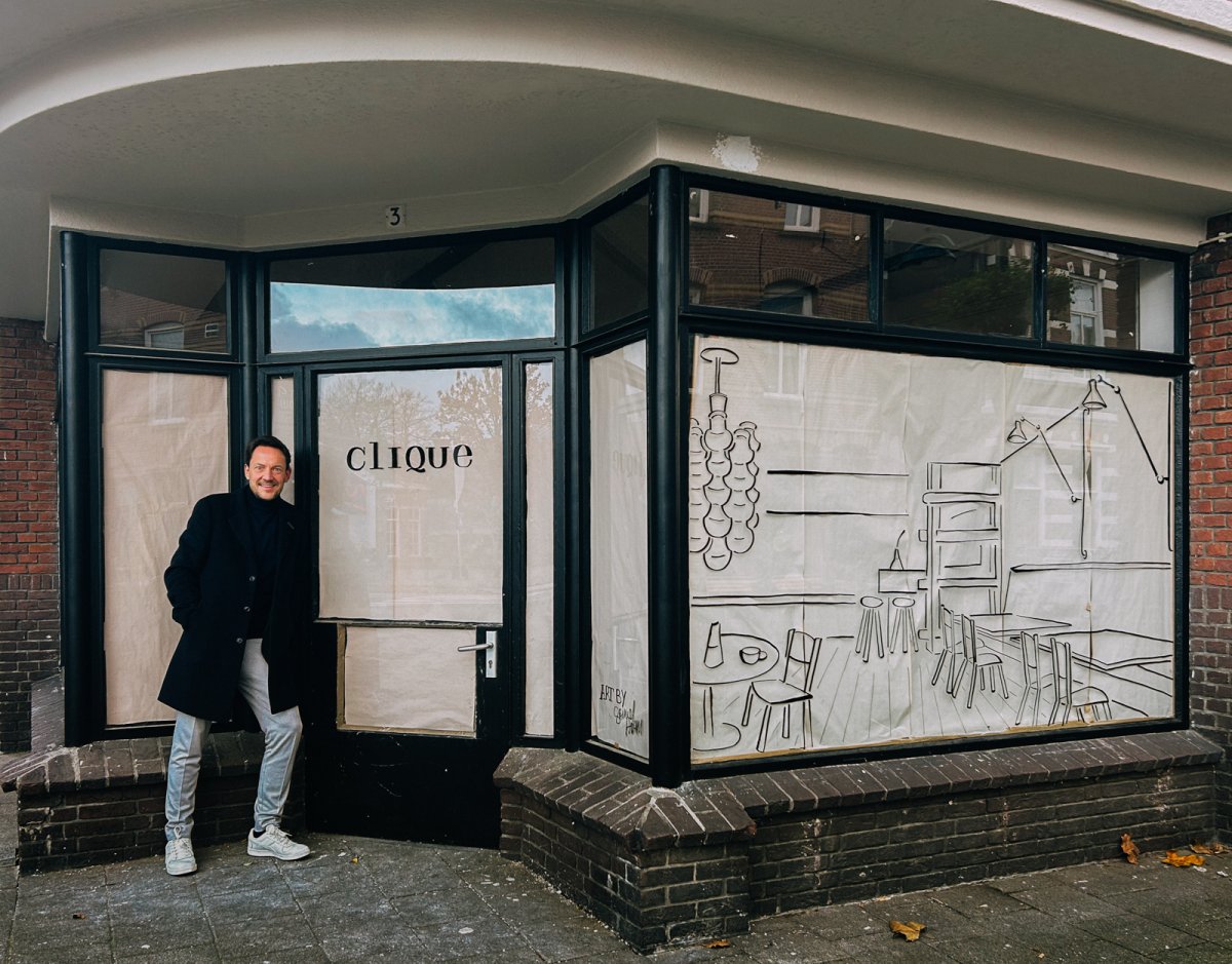 Clique komt in het voormalige pand van The Tosti Club en wordt momenteel compleet verbouwd, de tekening op het raam geeft al een sneakpeek. "De zaak krijgt een mooie vintage uitstraling met warme en luxe materialen." vertelt Ralf, de opening staat gepland in januari. Uiteraard krijgt Clique ook een mooi en ruim terras met uitzicht op de Mezz en de rest van het sfeervolle Van Coothplein. Eigenaar Ralf komt zelf uit de uitzendbranche, waarin hij horecazaken hielp op personeelsgebied, hier groeide de droom om een eigen horecazaak te openen.