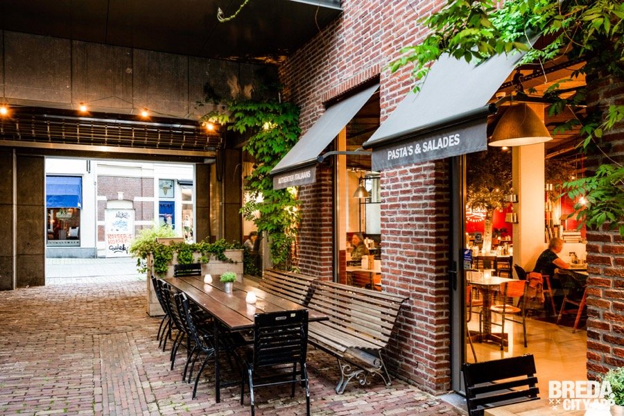 Time flies when you're having a good time. Het is 18:00 en de winkels sluiten. Maar wij zijn niet getreurd, want er staat nog een diner in Italiaanse sferen op de planning bij De Pasta Kantine. Dit restaurant bevindt zich tegenover Dot & Julot waar we zojuist nog waren.