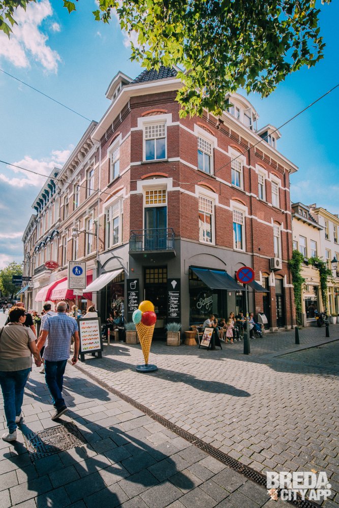Wanneer we verder lopen passeren we bankerbakkerij-Tearoom H. Van Haaren, deze bakkerij ziet er niet alleen prachtig uit, alle producten worden gemaakt in de bakkerij achter de winkel. Een unicum in de binnenstad van Breda, en absoluut een aanrader voor een kop koffie of thee met huisgemaakt gebak!