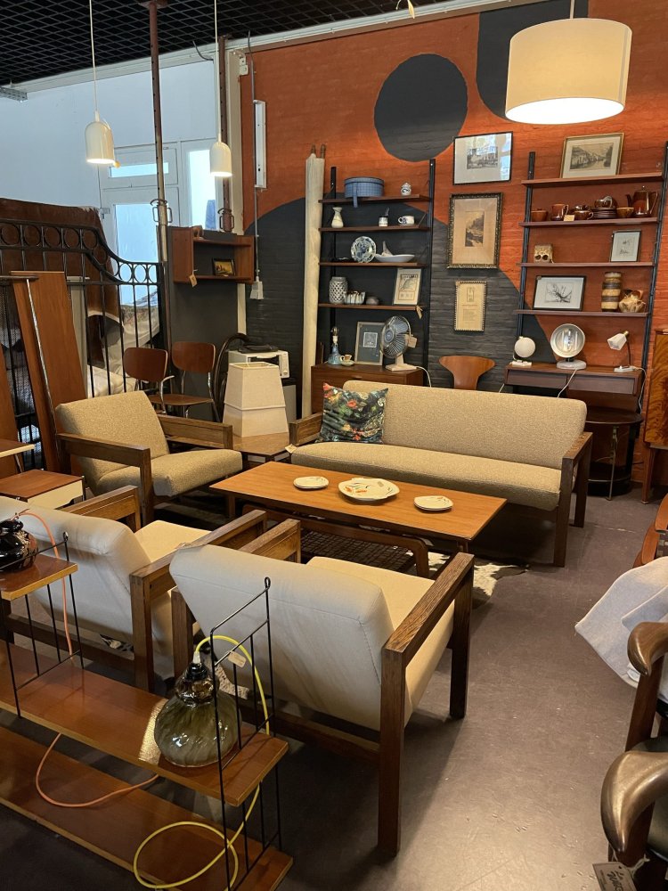 Wie mid-century zoekt, belandt vanzelf bij VintageMeesters. Hun stijl is strak, warm en tijdloos; van jaren ’50 dressoirs tot retro lampen en keramiek. Loop je verder het terrein over, dan valt één plek niet te missen: de imposante loods van Dirkson & Dirkson. Een ruige schatkamer vol antiek, Perzische tapijten, kasten, spiegels, curiosa en vondsten die je nergens anders ziet. Hier kun je verdwalen — op de goede manier.