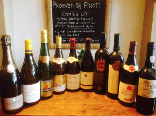 Wijnbar Pinot, gevestigd aan de Grote Markt, lanceert op dinsdag 19 april een nieuw concept; Prestige Tuseday. Naast het 4 gangen Tasting Menu schenken ze dan tien zeer exclusieve wijnen.